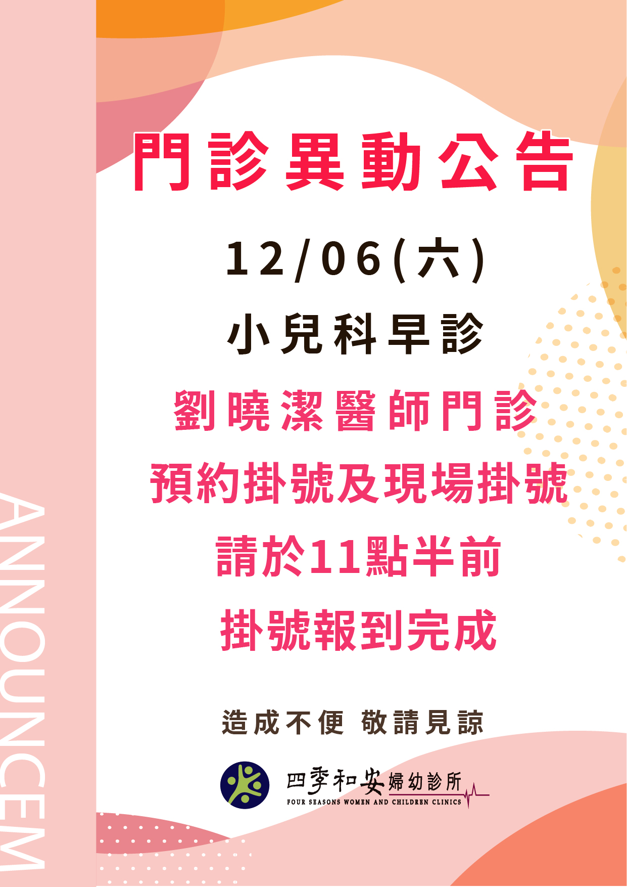 12/06兒科門診異動